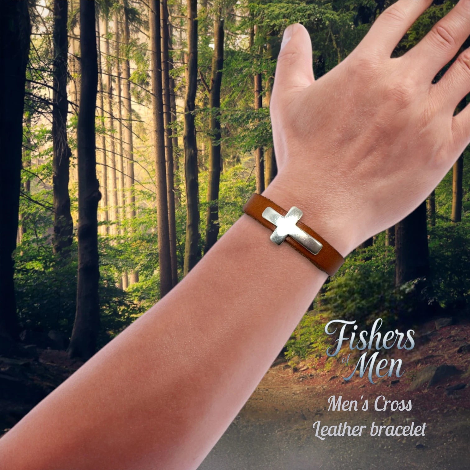 Fishers of Men Wide Single Band Cross genuine leather Bracelet.