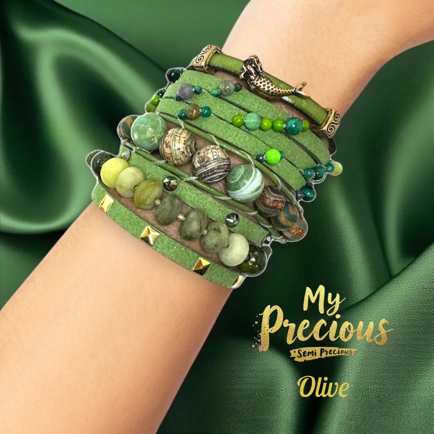 My Precious -Suede and Semi Precious Bracelet Collection-Olive
